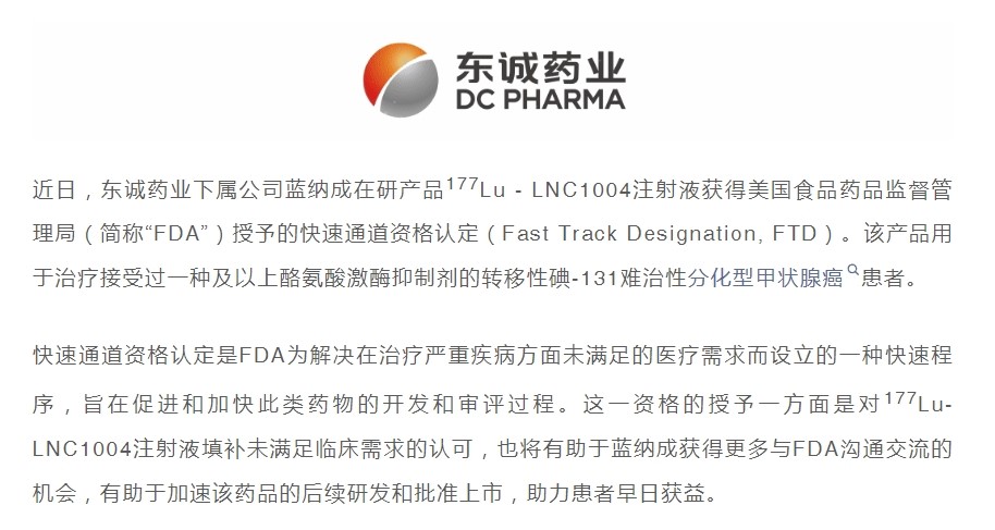 重磅 | 177Lu - LNC1004注射液获得美国...